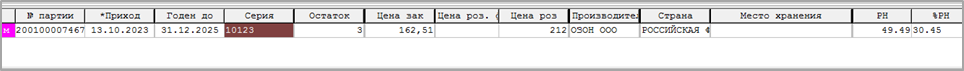 Серии, подозрительные к забраковке, также могут иметь подсветку в окне наличия и в чеке: